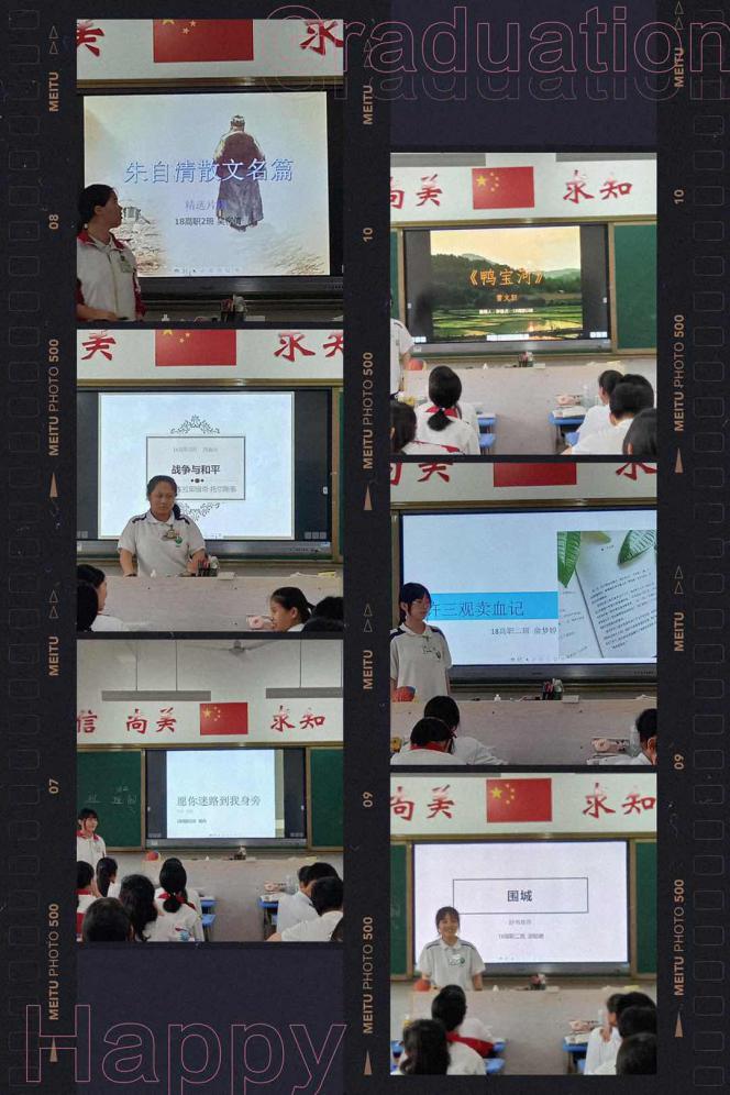 活动中,同学们打开制作精美的PPT,从作者介绍、内容简介、读后感等方面,绘声绘色地介绍自己2020年春节以来读到的最喜欢或印象深刻的好书。在分享者的积极畅言中,同学们从《狼王梦》中了解到迎难而上的重要;从《简爱》中领会爱的平等和自尊自重;从《战争与和平》中看到人们对正义的追求、自由生活的向往……