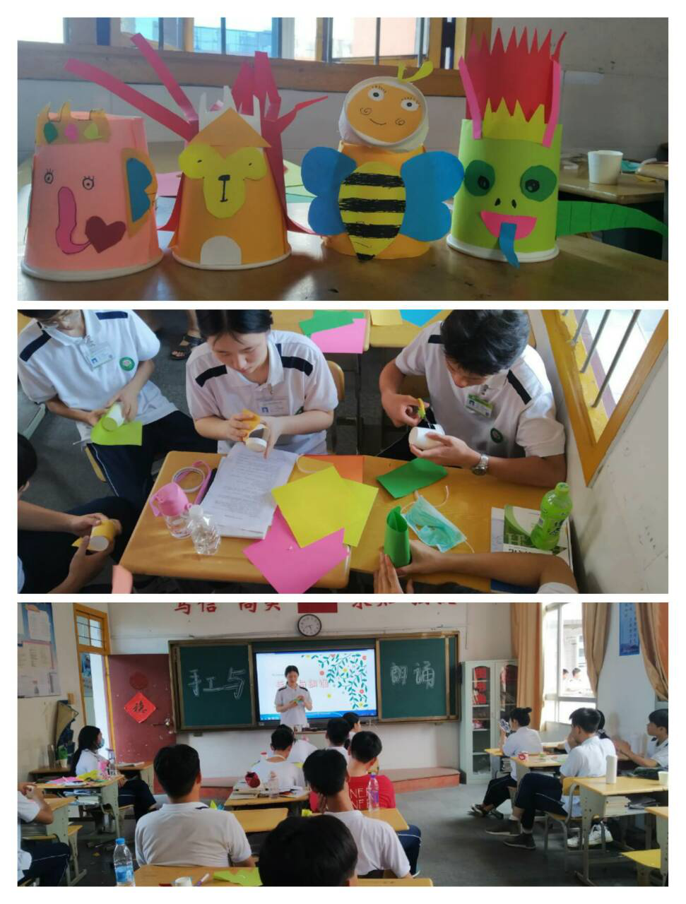 第一组由巫嘉怡同学组织,作品主题为“荷塘月色”。他们利用材料做出最具夏天特色的荷塘,荷塘上开着荷花,青蛙在荷塘中呱呱叫。加上深情的诗文朗诵,让我们感受到习习凉风下,蛙声一片的夏夜之美。