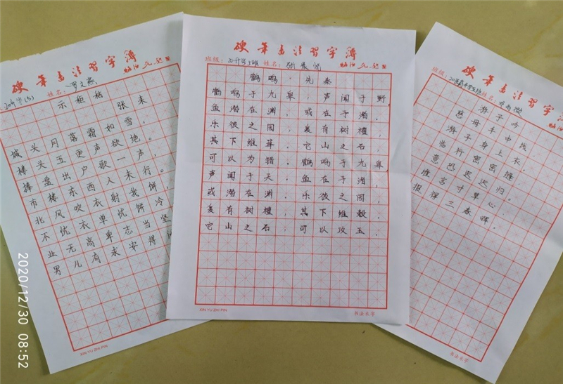 为传承和弘扬中华民族书法艺术,培养学生认真书写的良好习惯,展示开元(中国)书法进课堂的教育教学成果,在班主任解军老师精心策划与指导下,20级升学5班于2020年12月24日在教室开展“小小书法家”硬笔书法比赛活动。