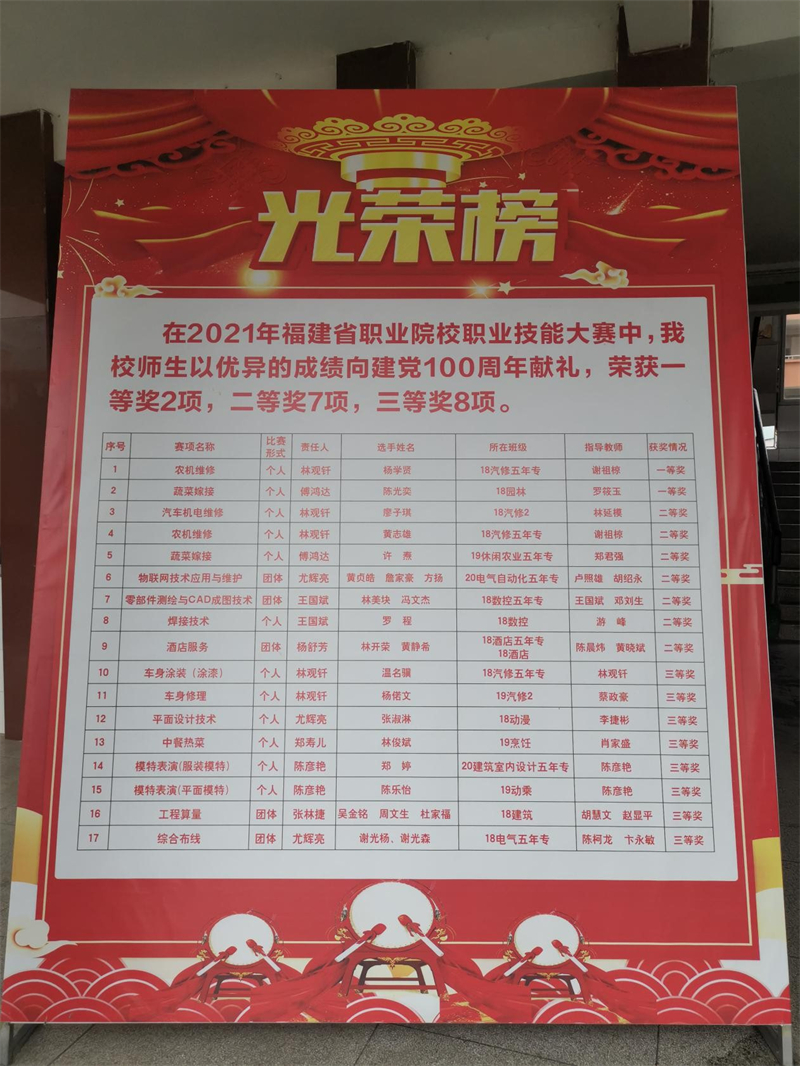 二是在校宣传栏处设置省技能大赛“光荣榜”,面向师生展示职业教育办学成果。