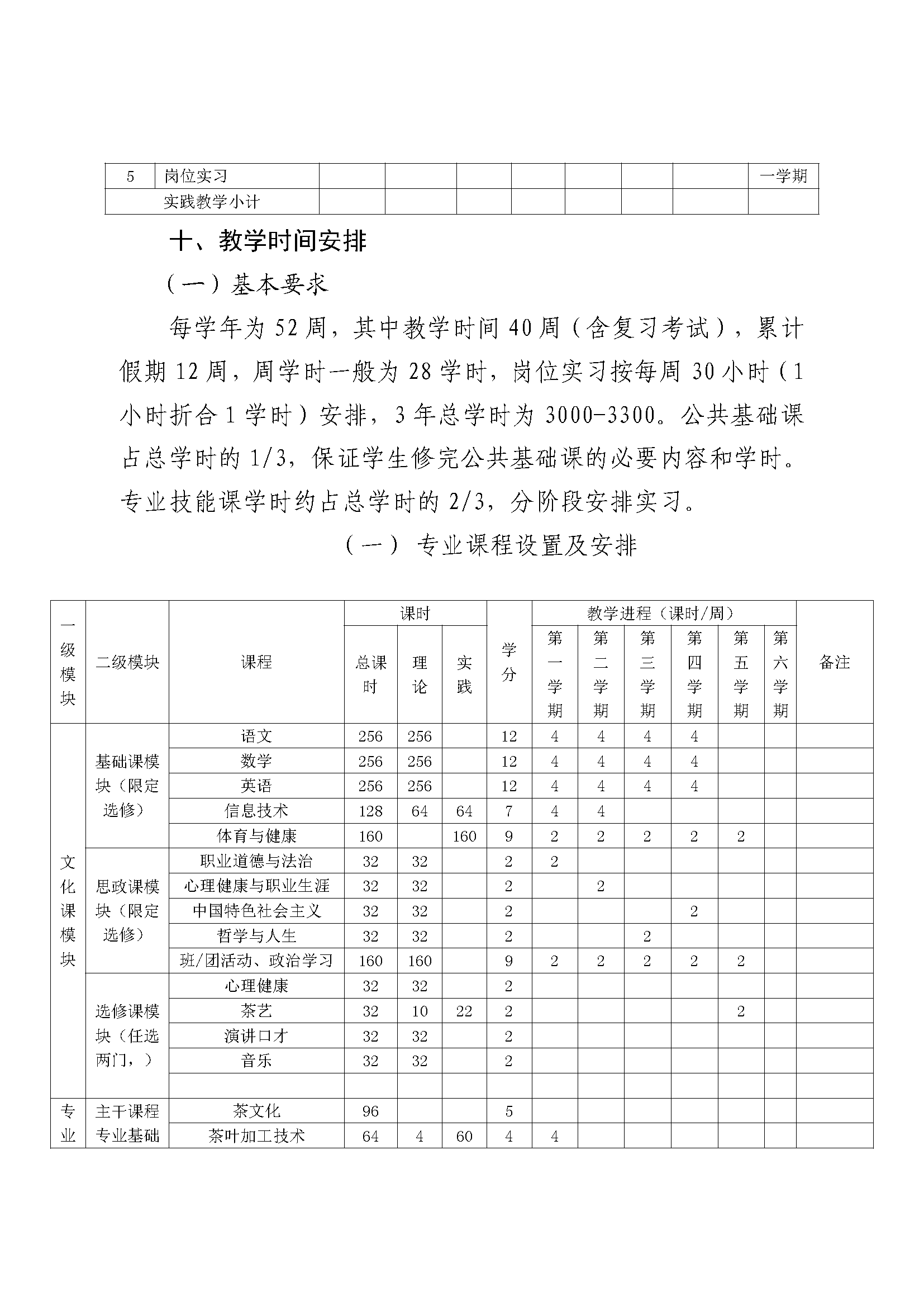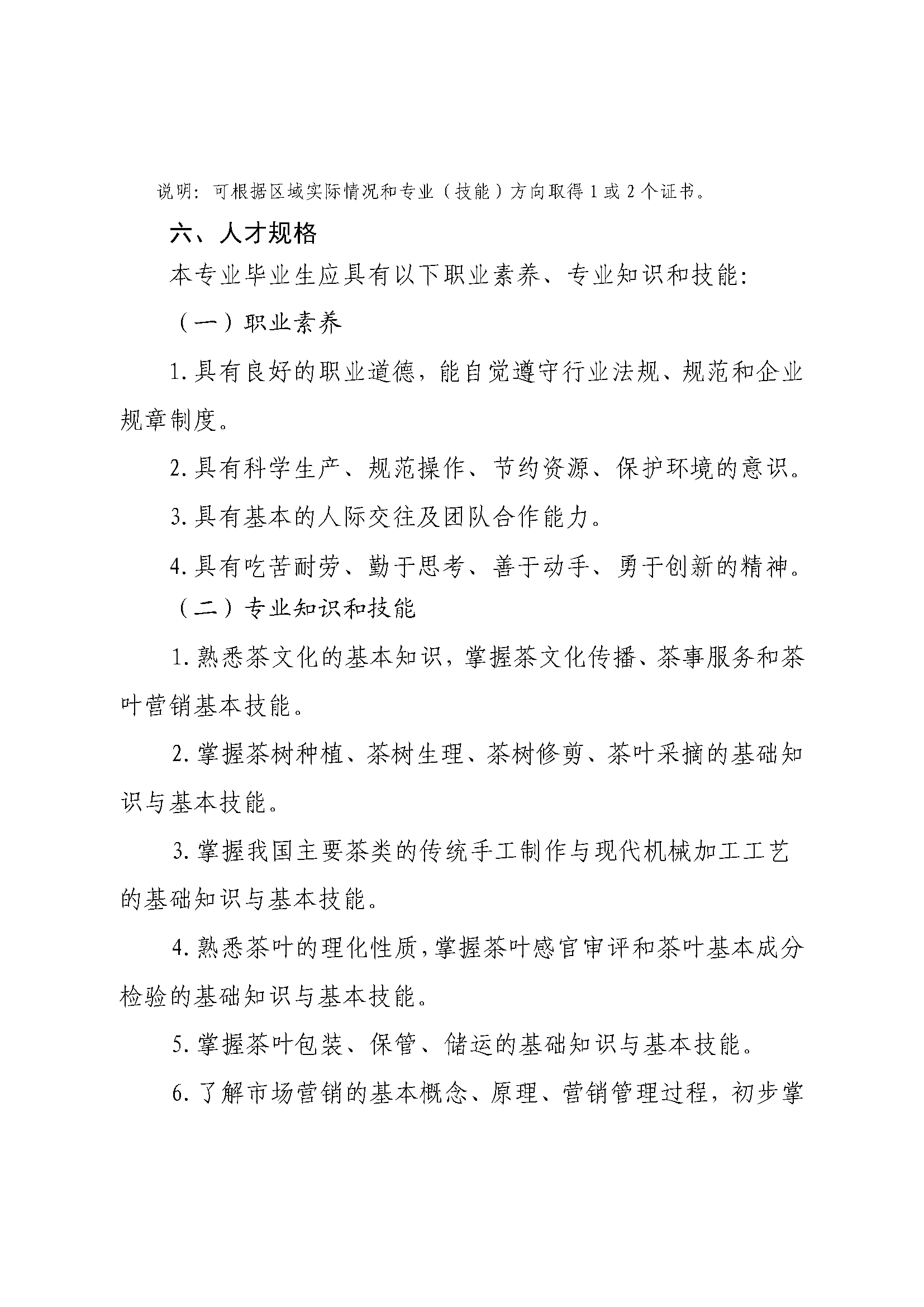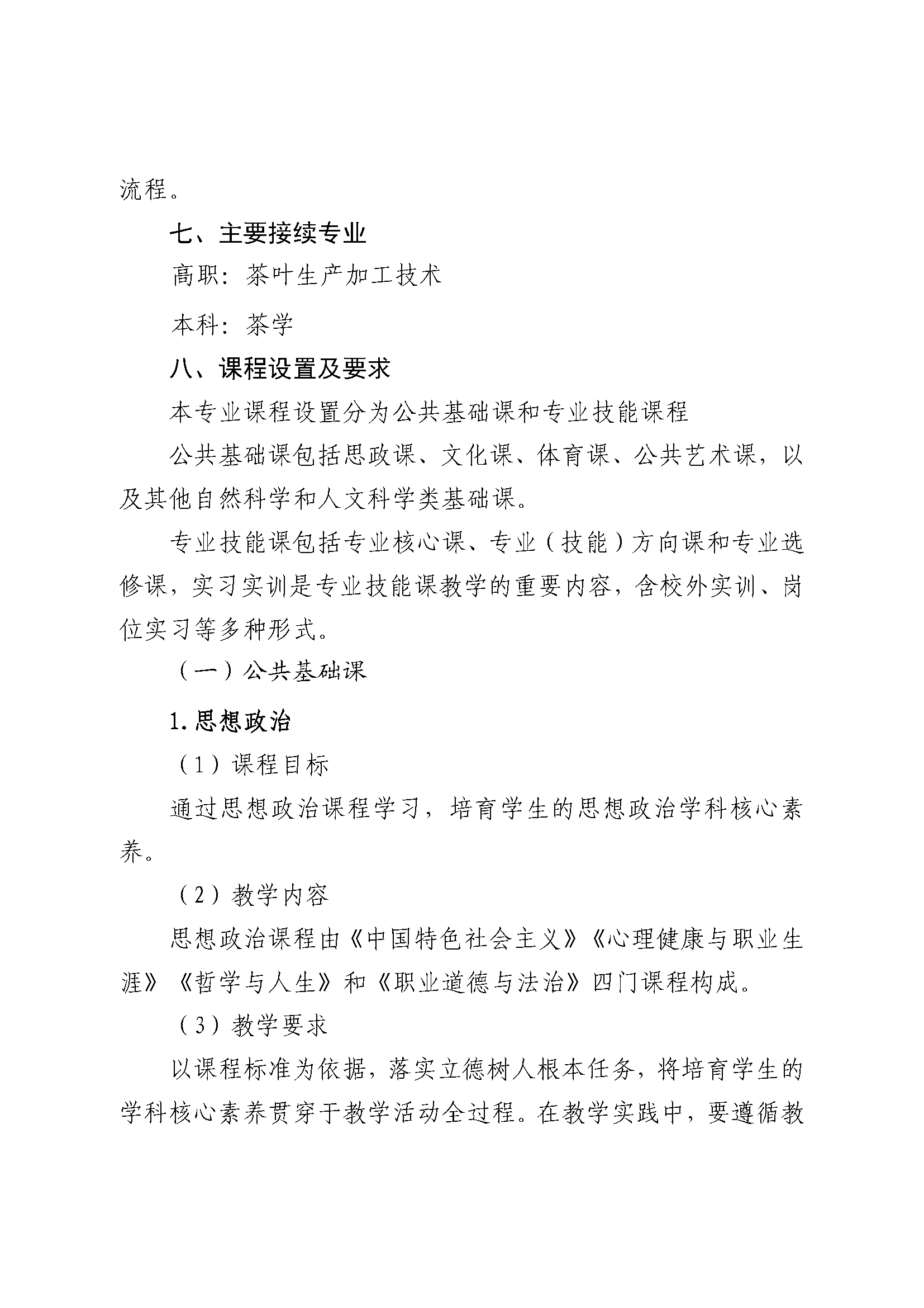 三明市农业学校茶叶生产与加工专业人才培养方案(2023)