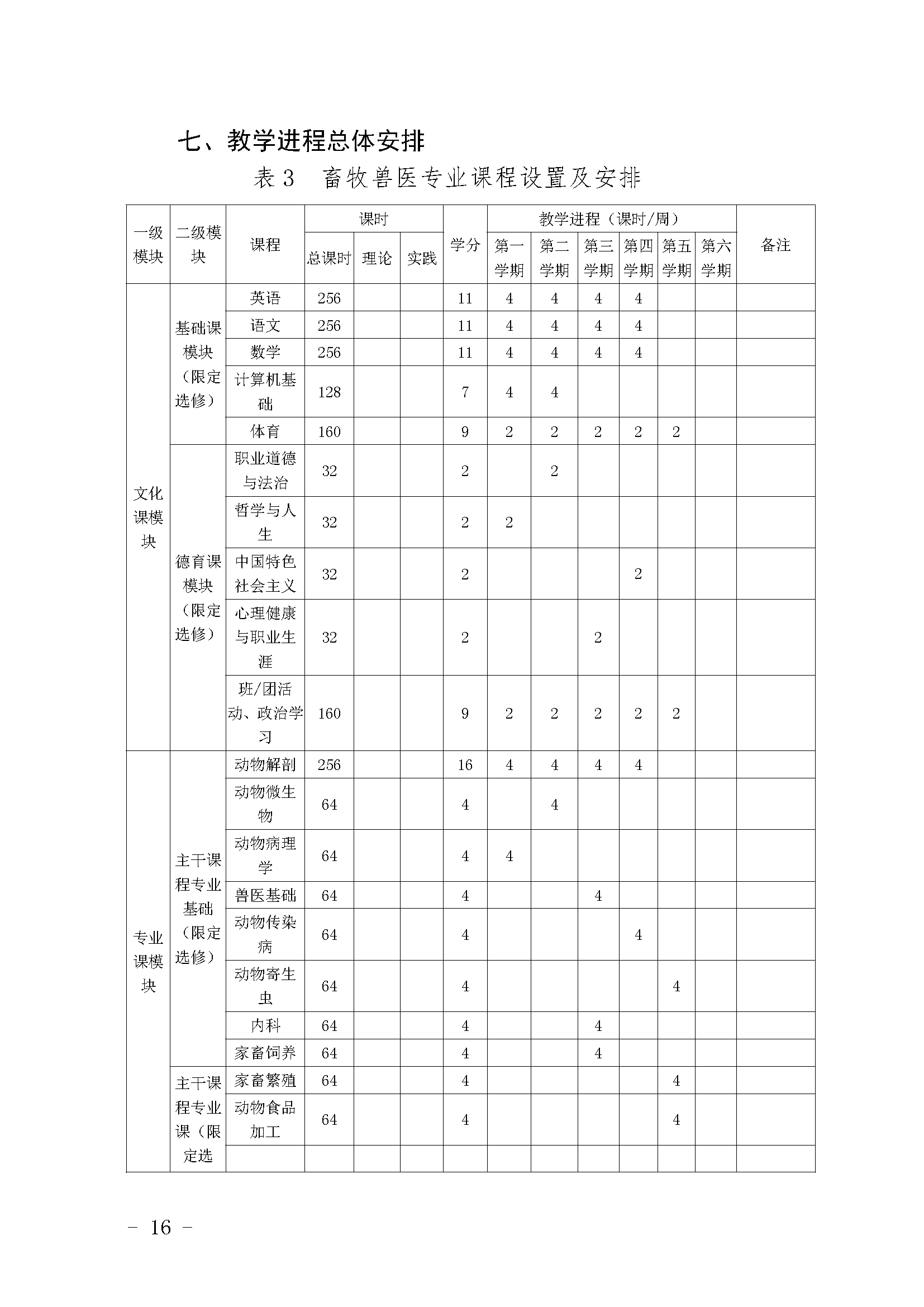 三明市农业学校畜禽生产技术专业人才培养方案(2023)