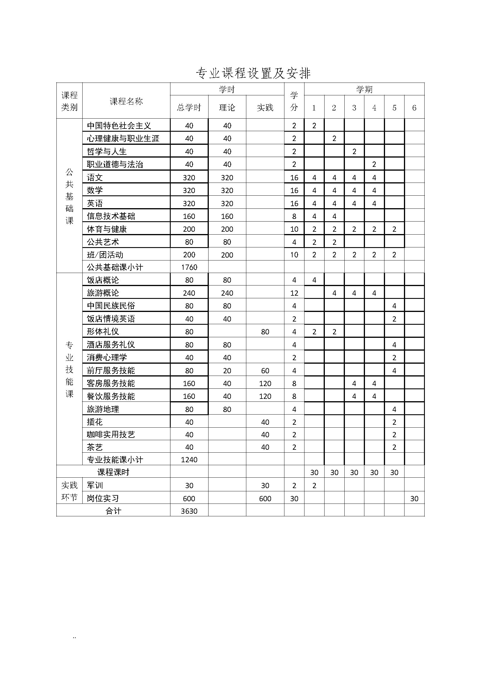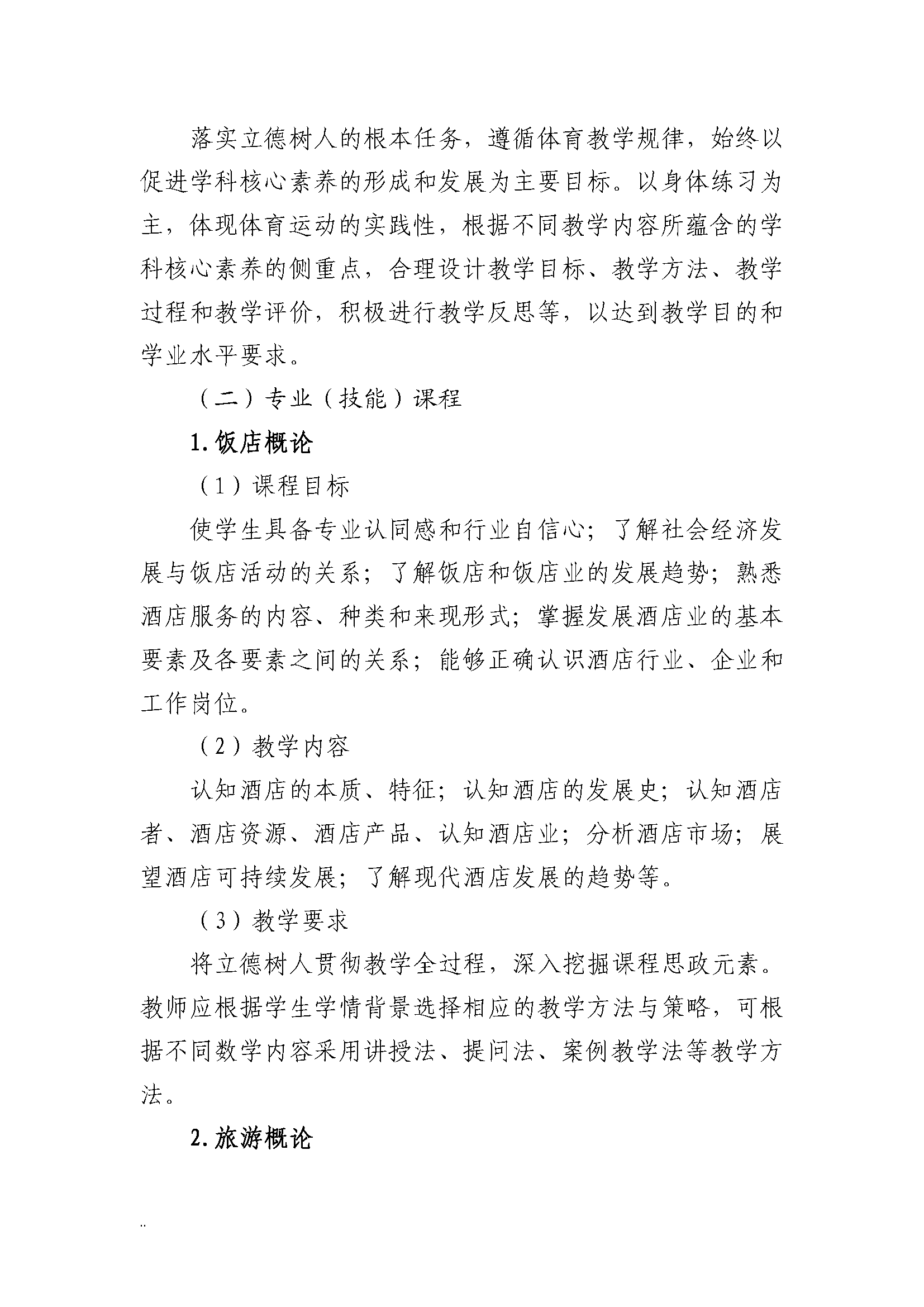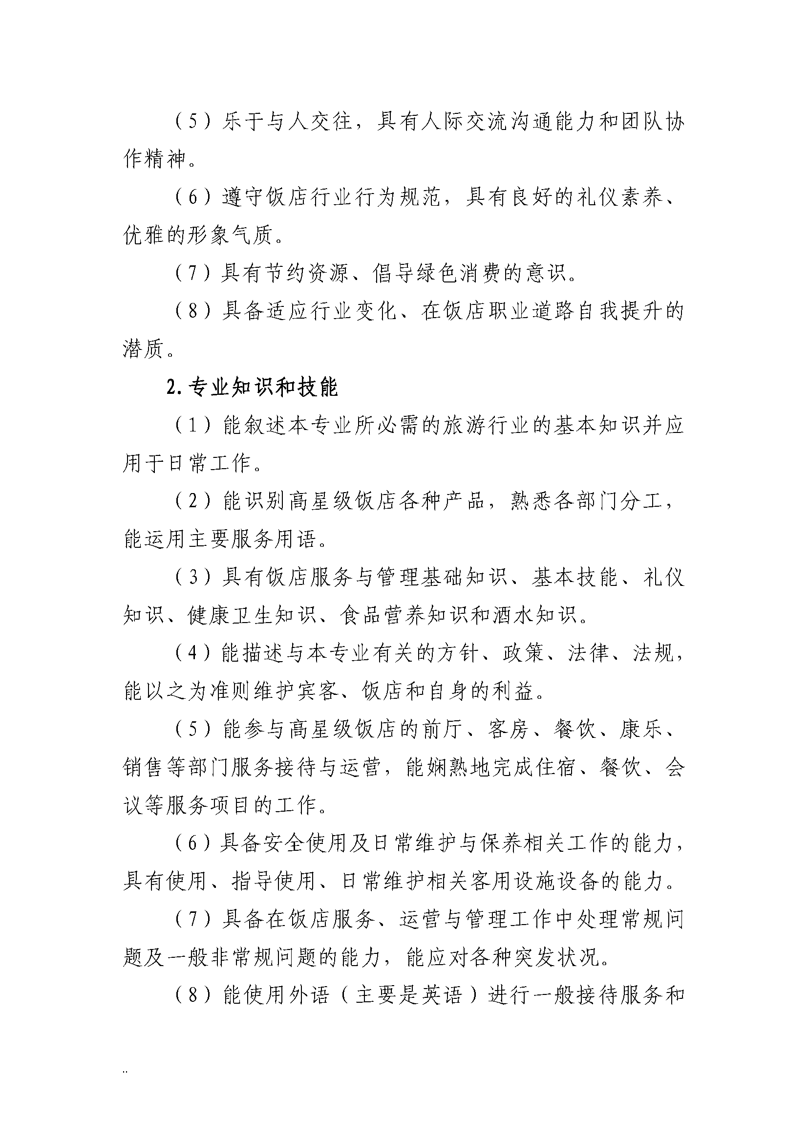 三明市农业学校高星级饭店运营与管理专业人才培养方案(2023)