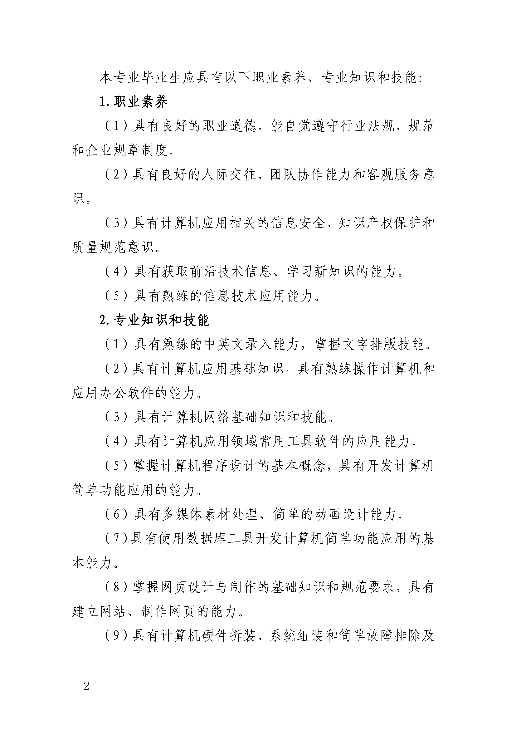三明市农业学校计算机应用专业人才培养方案(2023)