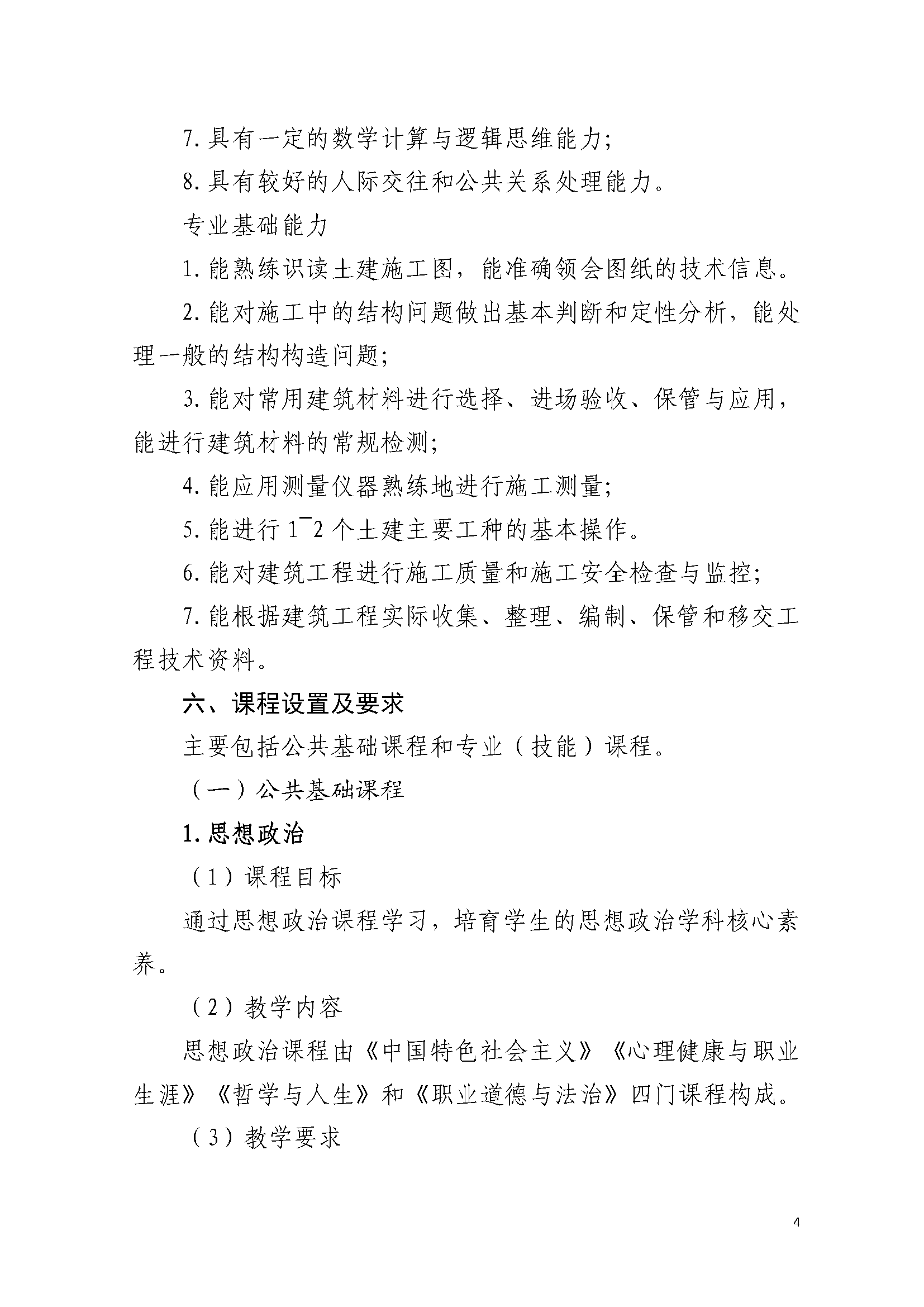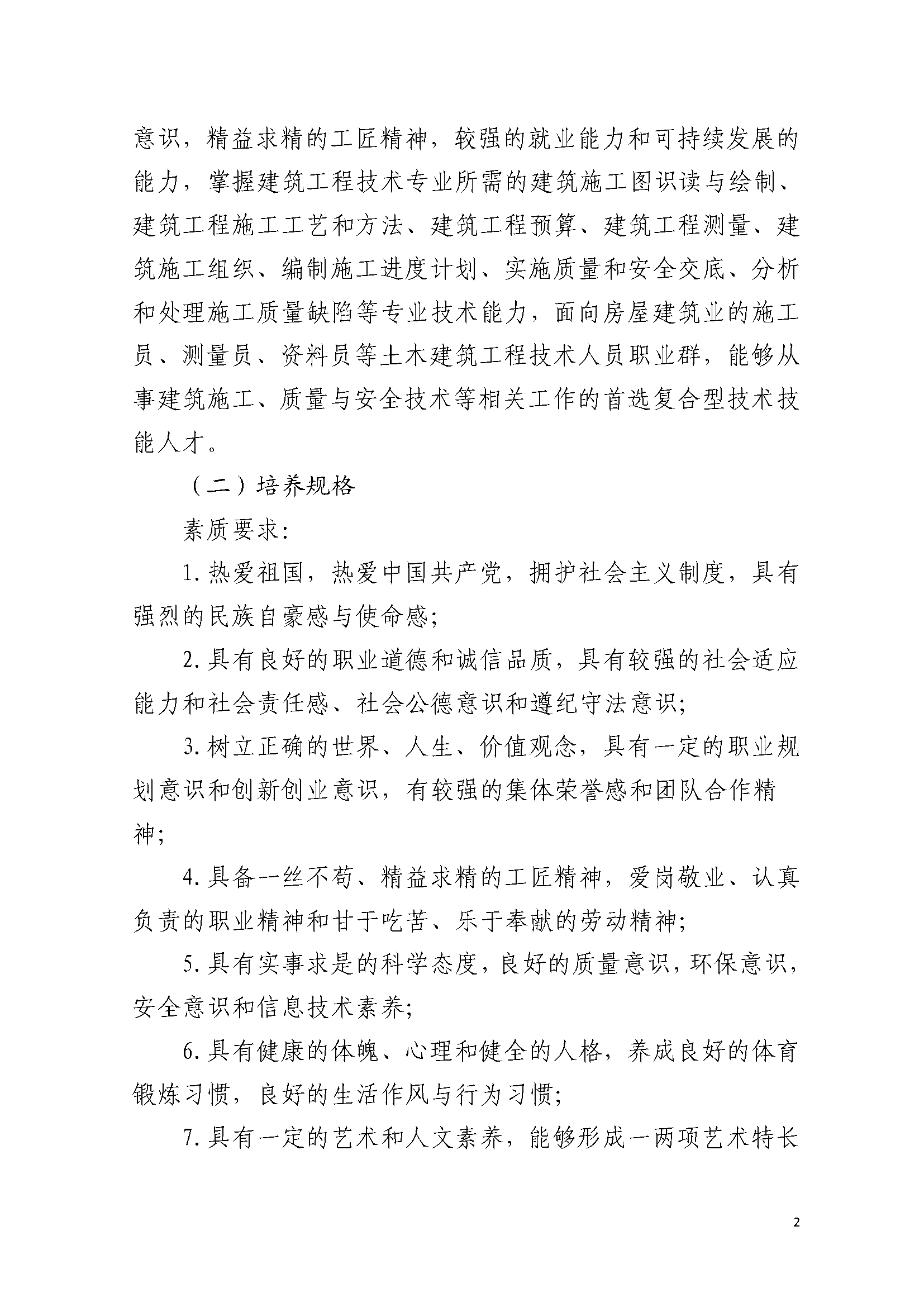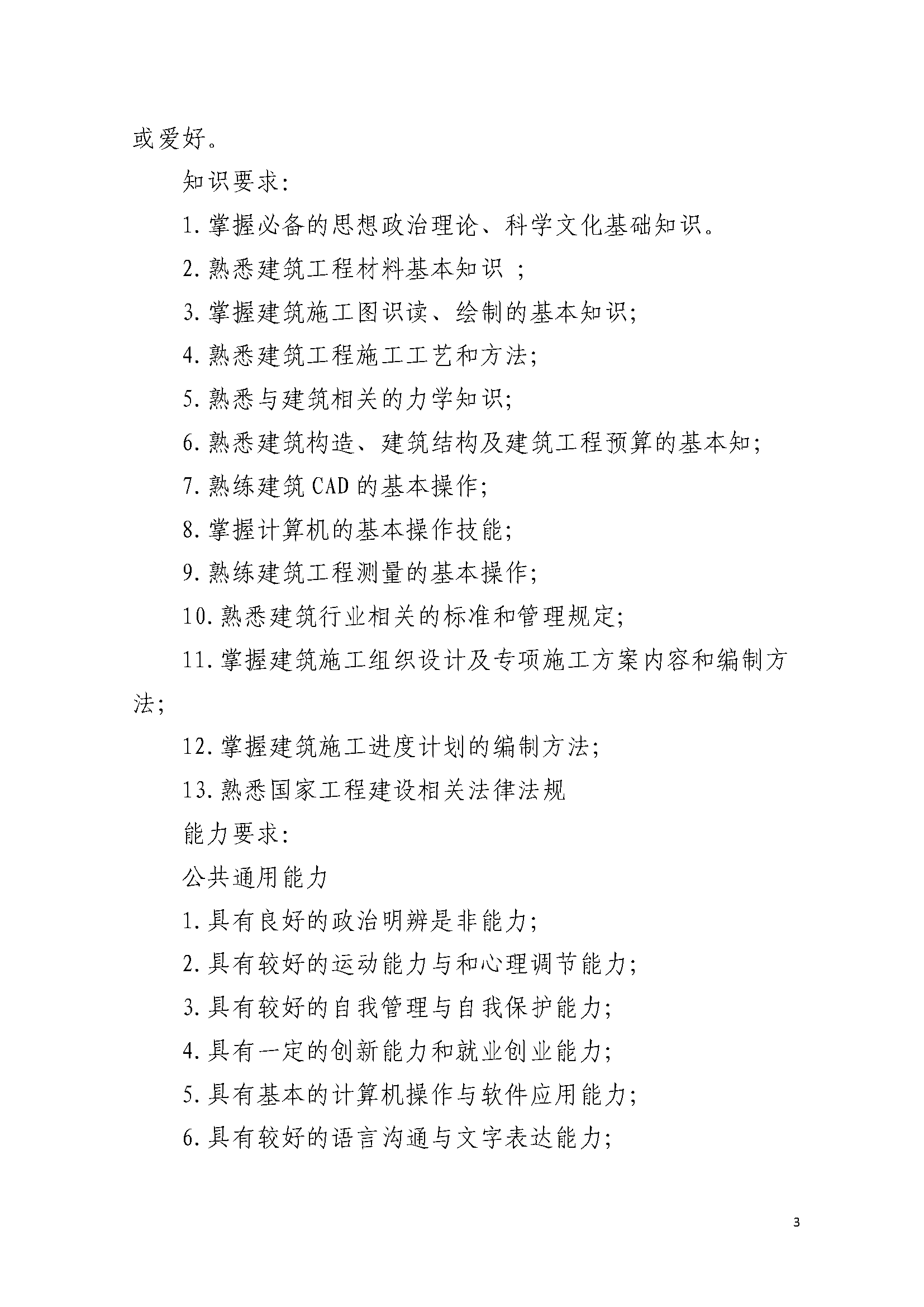 三明市农业学校建筑工程施工专业人才培养方案(2023)