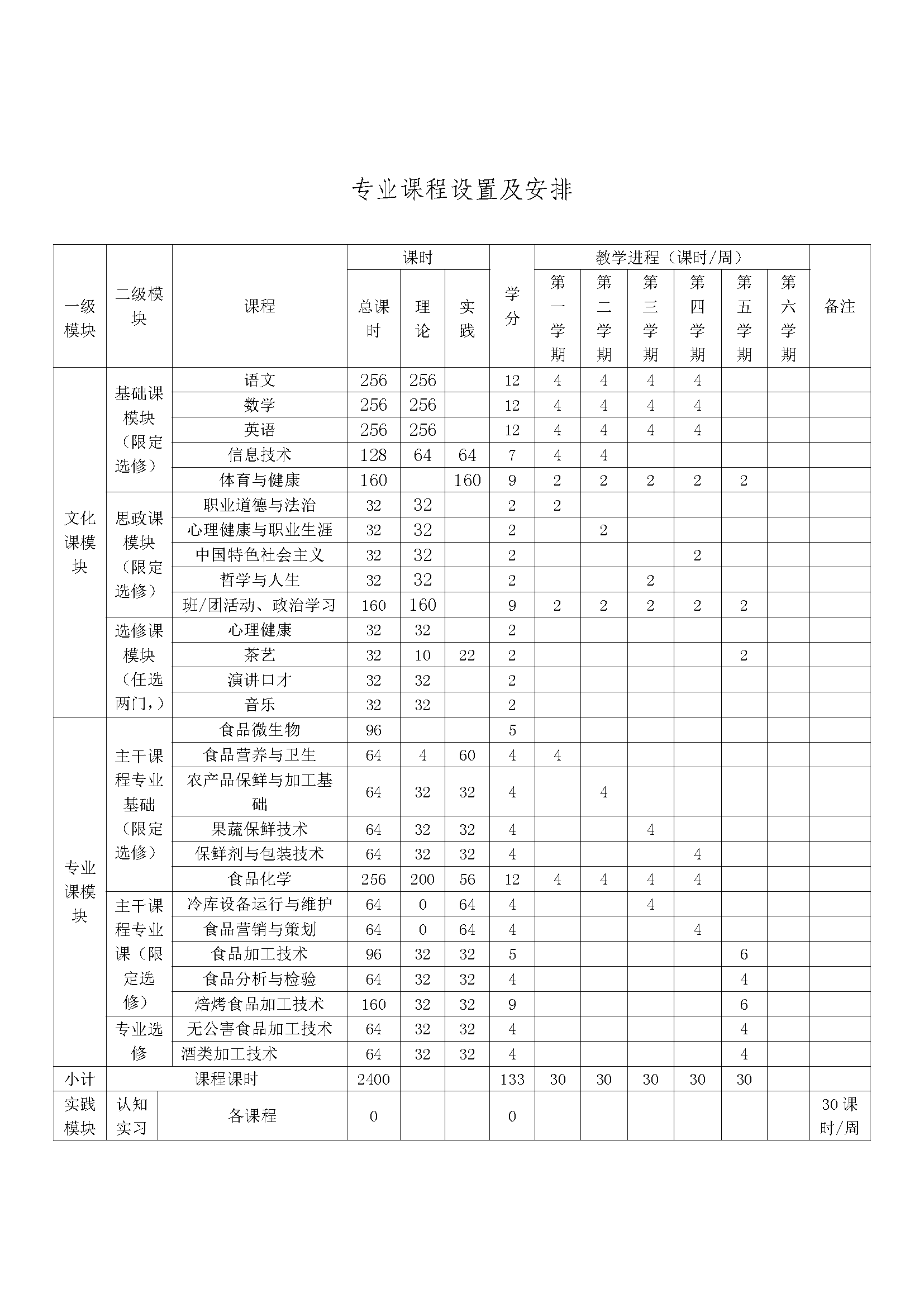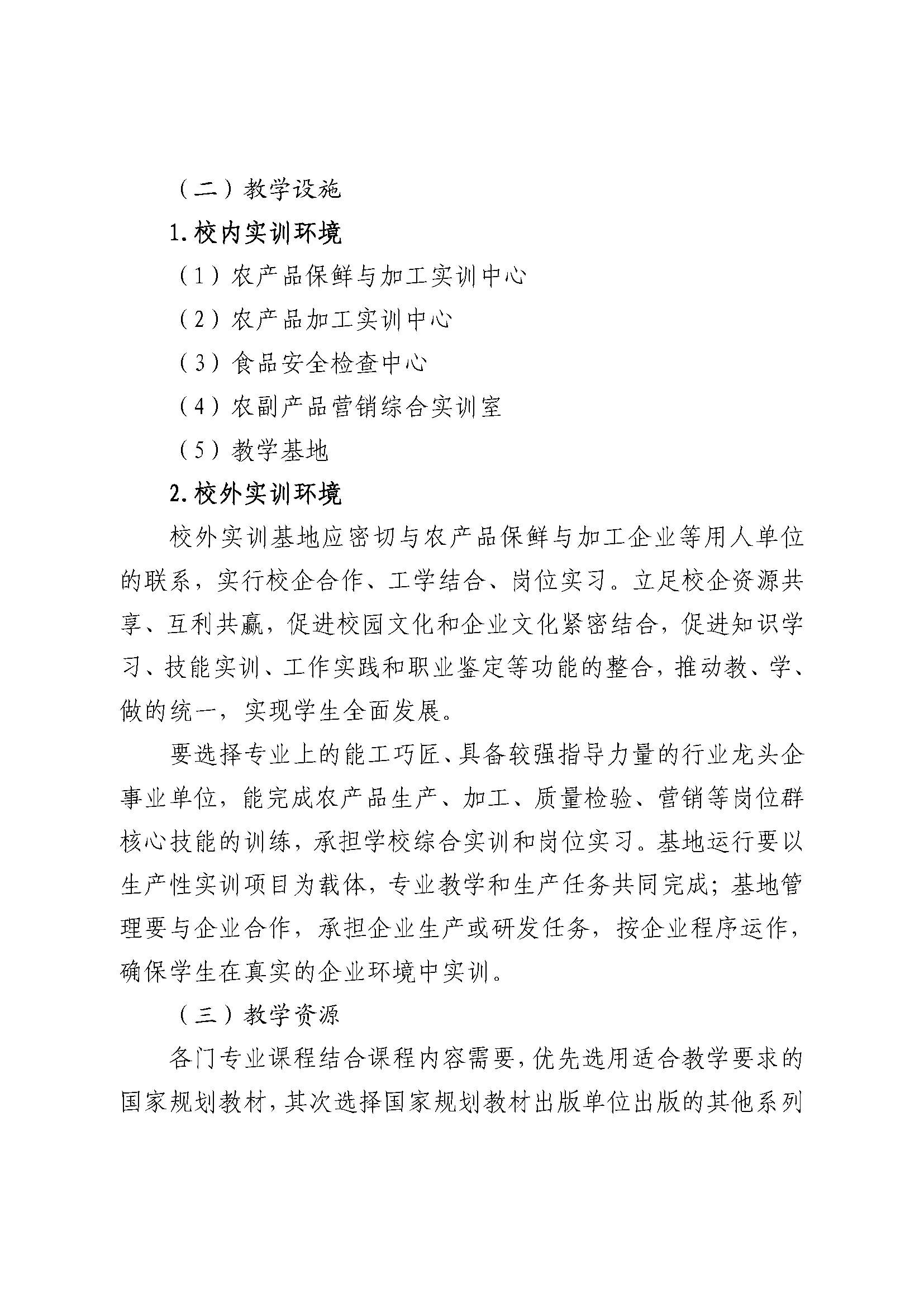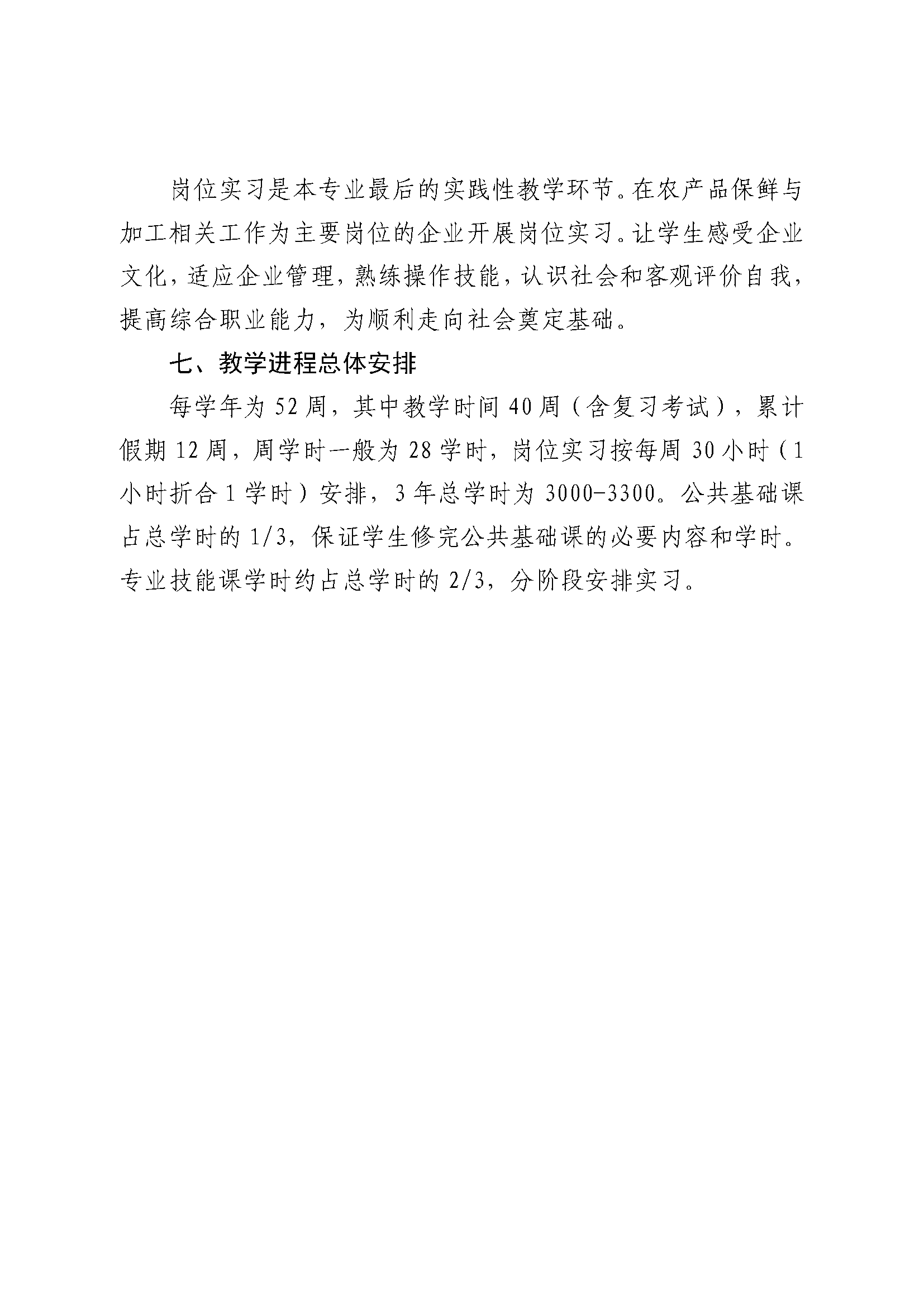 三明市农业学校农产品贮藏与加工专业人才培养方案(2023)