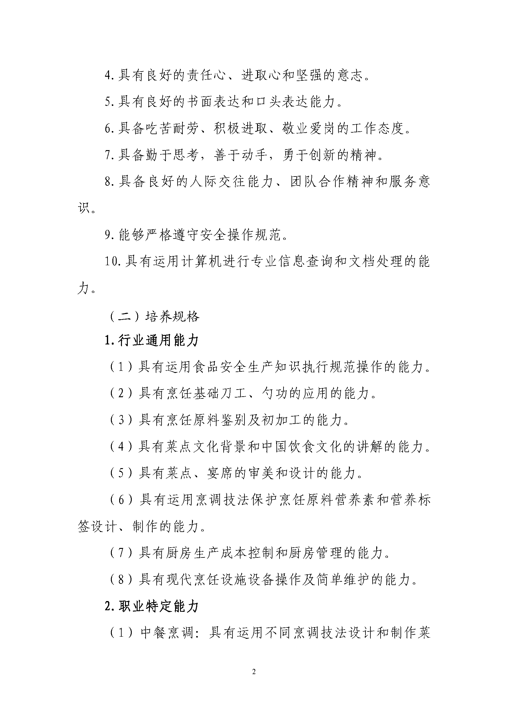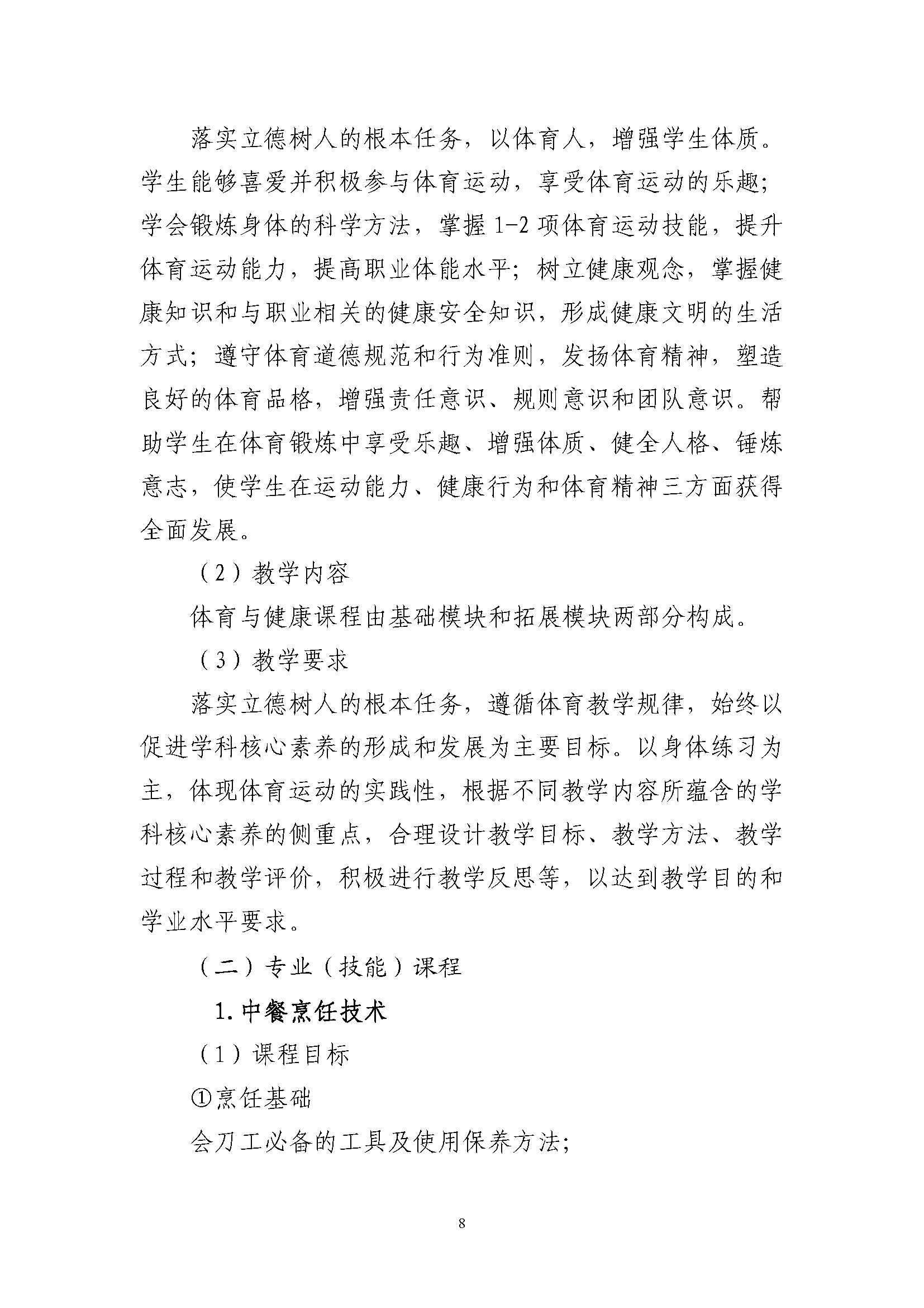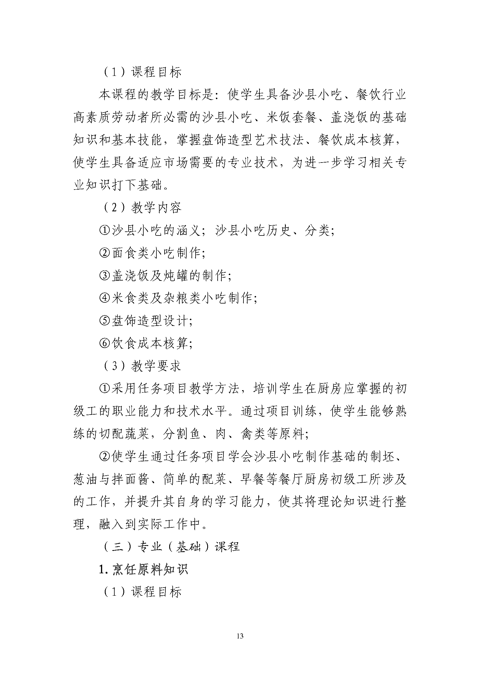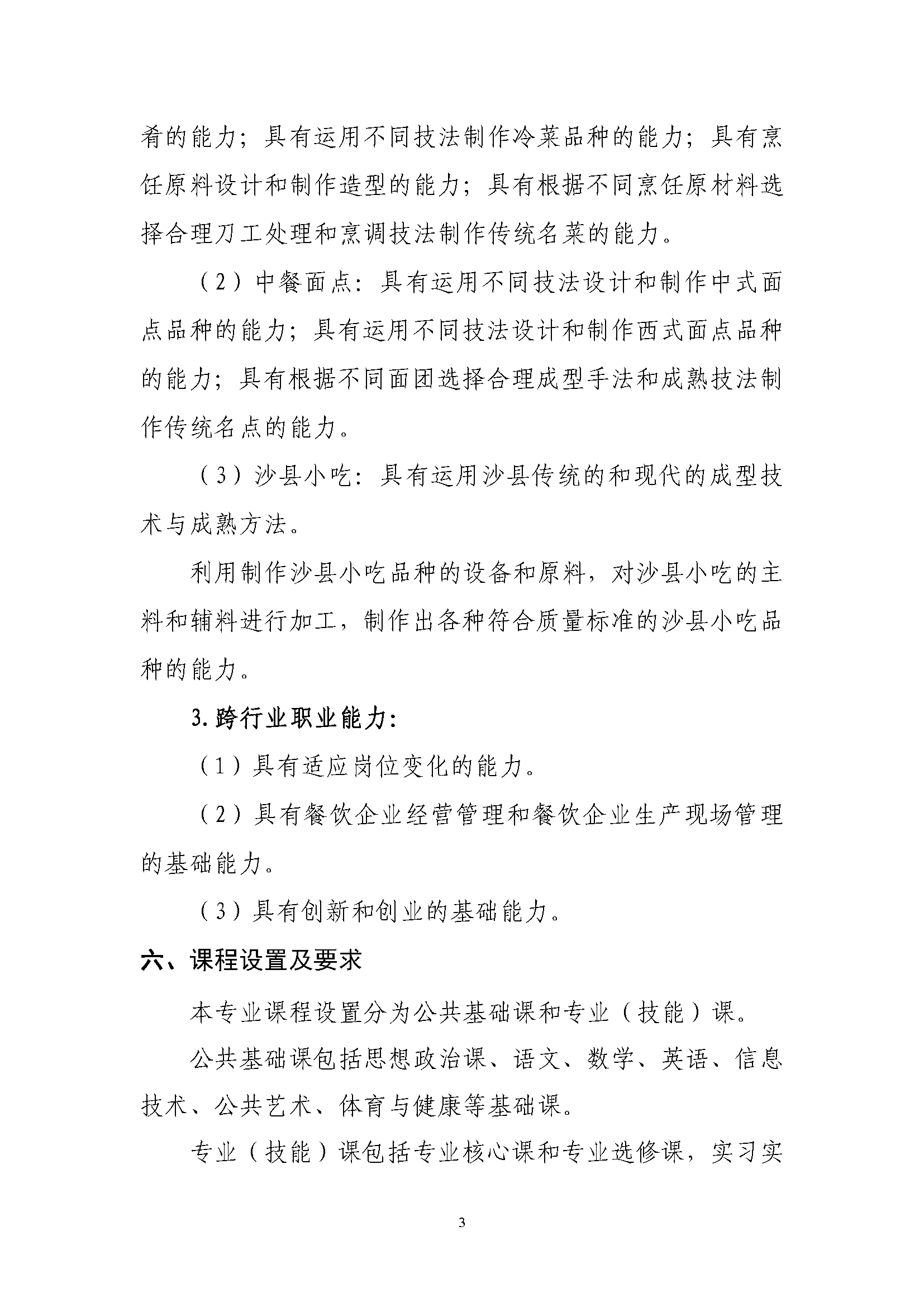 三明市农业学校中餐烹饪与营养膳食专业人才培养方案(2023)