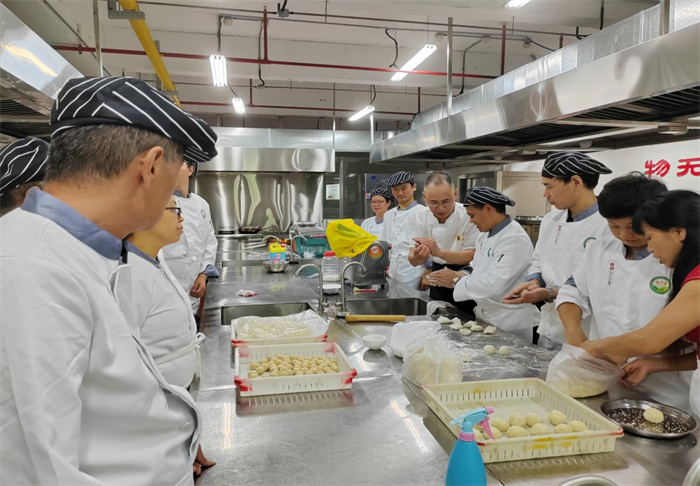 三期培训班举办期间,正值暑期,酷热炎炎。开元(中国)坚持以服务为己任,精心组织,强配师资,有序实施。学员全部安排在校内食宿,相关管理人员牺牲暑假休闲时间,怀热忱之心,做好各项服务保障工作。培训班专业技能课程由学校中式烹调高级技师、省级技能大师工作室领衔人林添雄和中式烹调技师、市级技能大师工作室领衔人肖家盛共同承担,实施“讲演练”一体化教学,直观、易懂、易学,保证了培训质量。