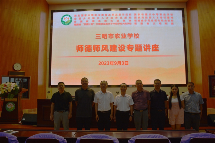 副校长陈文优指出,近年来,全校教职工紧紧围绕学校教育中心工作,切实履行各项职能,积极主动作为,师德师风建设方面发挥了重要作用,做了大量卓有成效的工作,为学校教育事业健康发展奠定了坚实基础。他向全校教师提了四点建议:一要向师德标兵学习,服从学校安排,施展自己的才华,为学校的教育发展奉献青春与热血;二要加强师德修养,要有乐业、勤业、创业、献业的意识,要有理解与宽容、博爱与尊重的品格和丰富的情感,要有实事求是的态度、追求真理的勇气和好学探究的精神;三是加强责任意识,在各自的工作岗位上,要自觉投入到学校教育教学的实践中去,用新理念武装自己头脑,指导自己的教学行为。四是争当“四有”好老师,好老师要做到学为人师、行为世范,立德修身,潜心治学,开拓创新,真正把为学、为事、为人统一起来,当好学生成长的引路人,为培养德智体美劳全面发展的社会主义建设者和接班人、全面建设社会主义现代化国家不断作出新贡献。