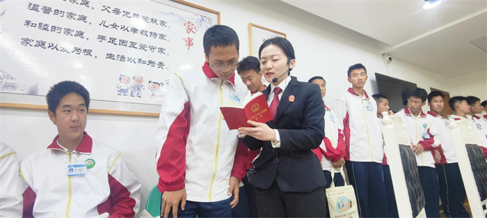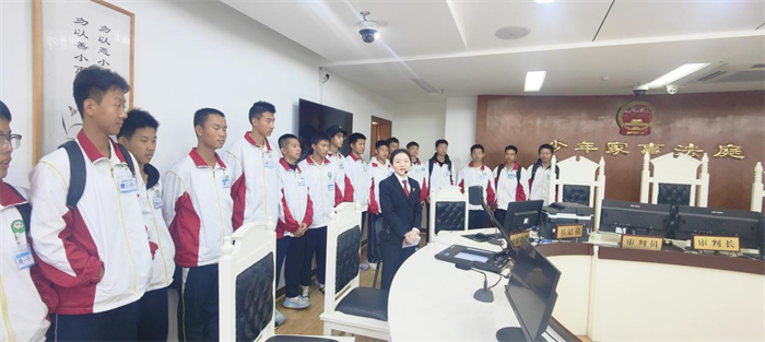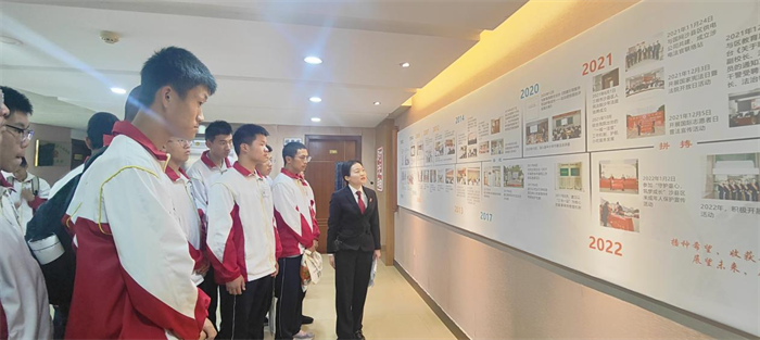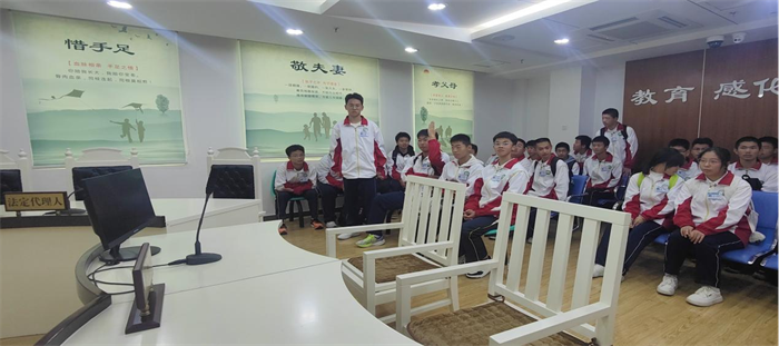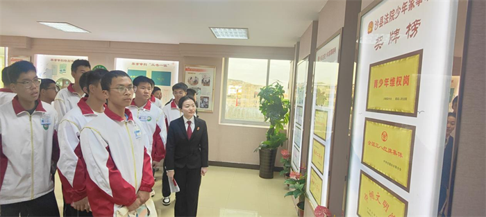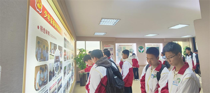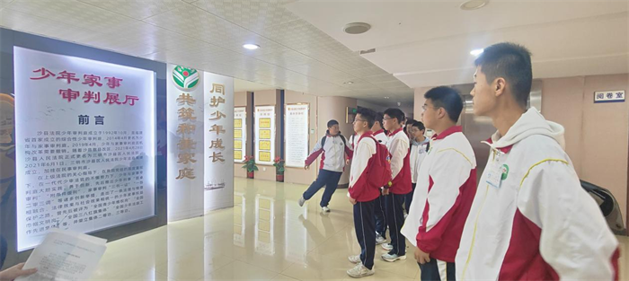 随后,在学校法治副校长团队的带领下,同学们在法院三楼先后参观了少年家室法庭、家事纠纷调解室、少年家室审判展厅和法治发展史等场所,法官们还耐心向学生宣读宪法,并进行了有奖竞猜,使学生们近距离感受法治氛围,增加法治信仰。