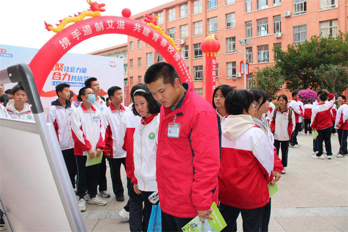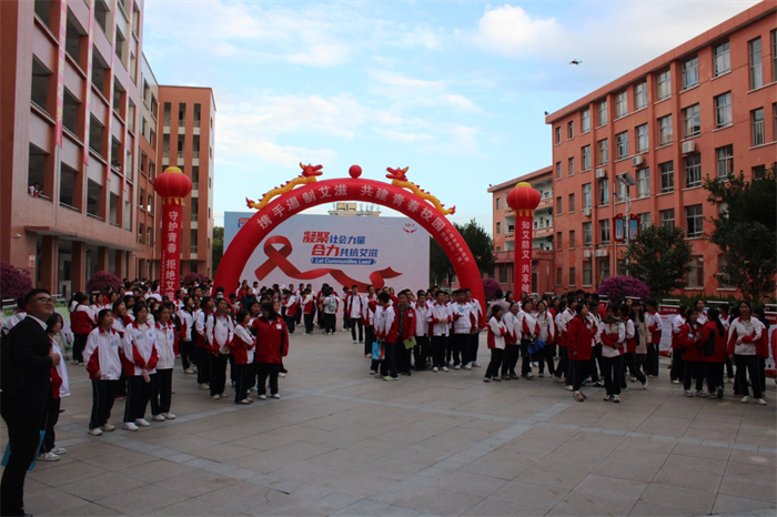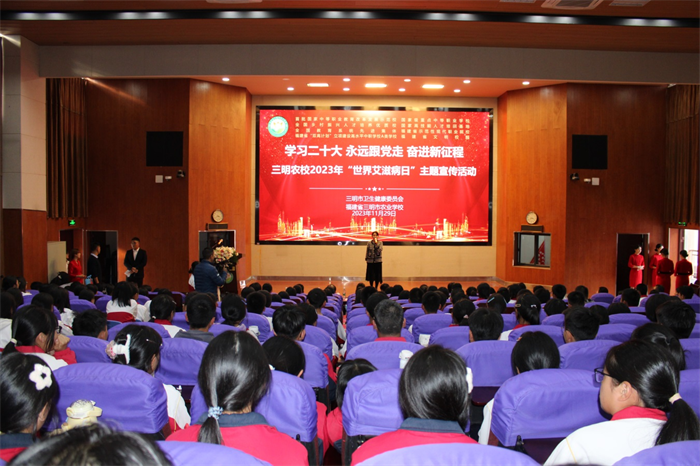 2023年12月1日是第36个世界艾滋病日,今年的宣传活动主题为“凝聚社会力量 合力共抗艾滋”。为深入开展学习贯彻习近平新时代中国特色社会主义思想主题教育,进一步宣传艾滋病预防知识,提高师生对艾滋病的科学认识,营造更加健康、和谐、文明的校园环境。2023年11月29日下午,三明市农业学校联合三明市卫生健康委员会开展2023年“世界艾滋病日”主题宣传活动。三明市卫生健康委员会二级调研员卢叶文,三明市疾病预防控制中心党总支书记、中心主任杨秀玉,开元(中国)党委书记、校长罗世钦,沙县区卫健局局长许法水,三明市卫生健康委员会疾控科科长林航,三明市疾病预防控制中心副主任陈忠,开元(中国)党委委员、副校长陈文优,沙县区卫健局副局长、疾控局局长刘建明,沙县区疾控中心主任谢植晖出席宣传活动现场。