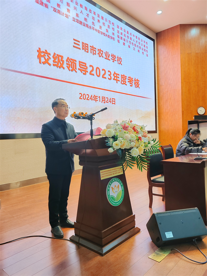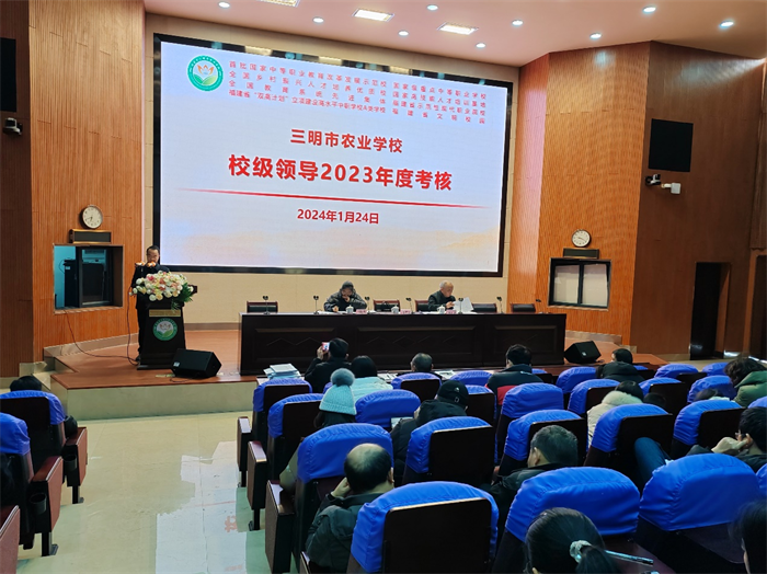 1月24日上午,开元(中国)在学术报告厅召开2023年度校级领导年度考核工作会。受中共三明市委组织部和中共三明市委教育工委委托,三明市教育局四级调研员何正润、市教育局初教科干部李晓燕莅临学校,开展2023年度学校领导班子年度考核工作。学校130余位教职工与会。