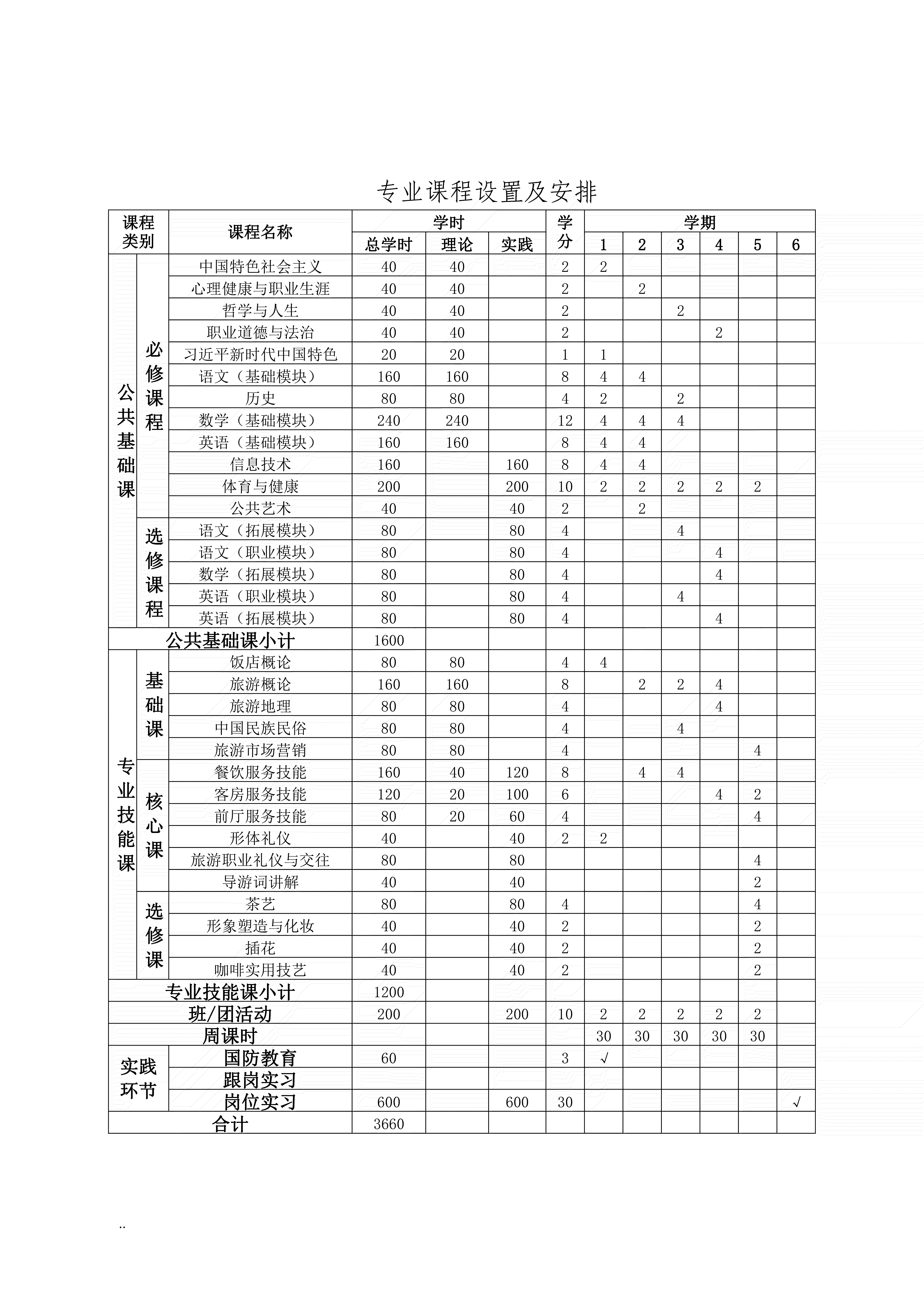 三明农业学校高星级饭店运营与管理专业人才培养方案(2024)
