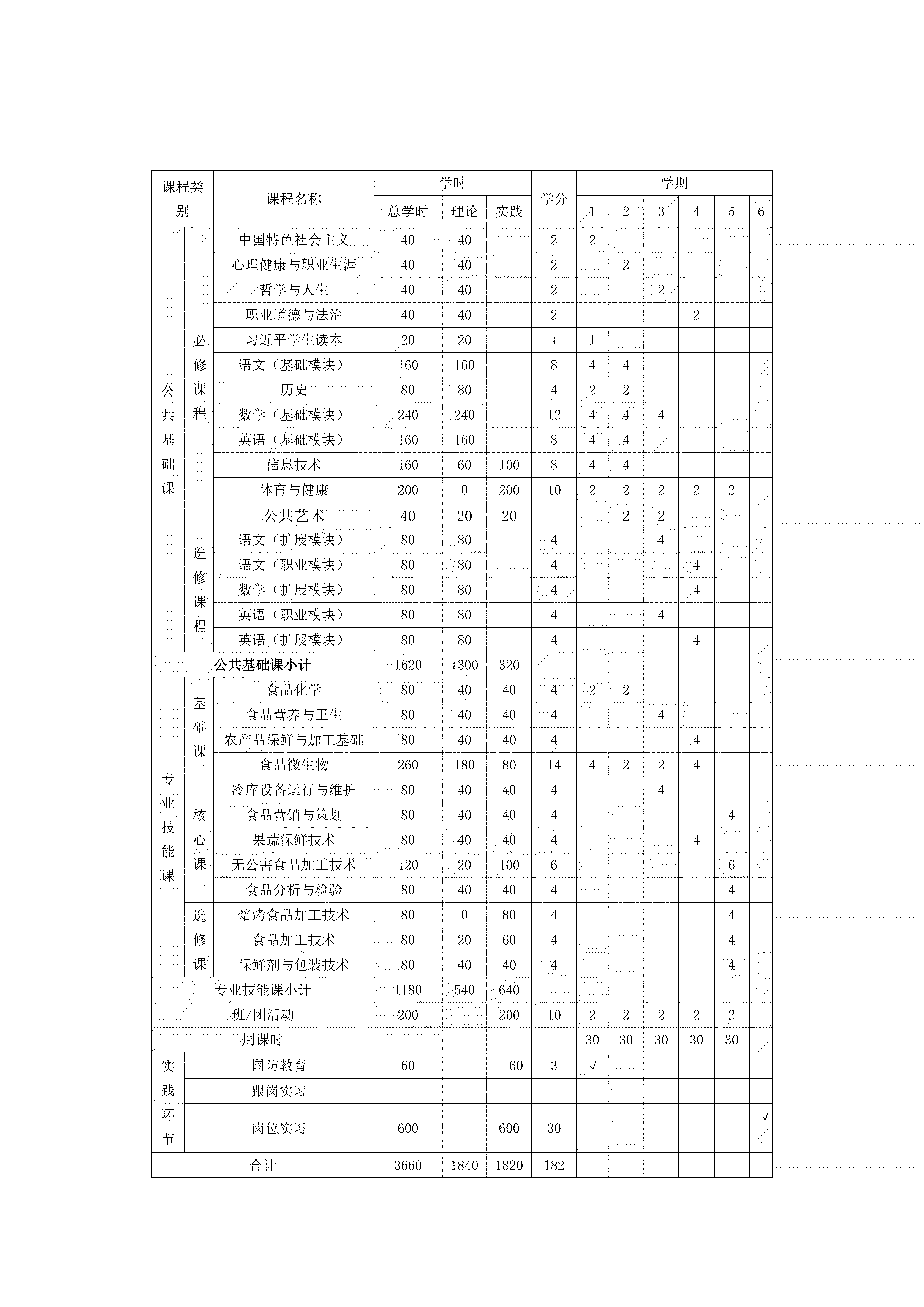 三明市农业学校农产品贮藏与加工专业人才培养方案(2024)