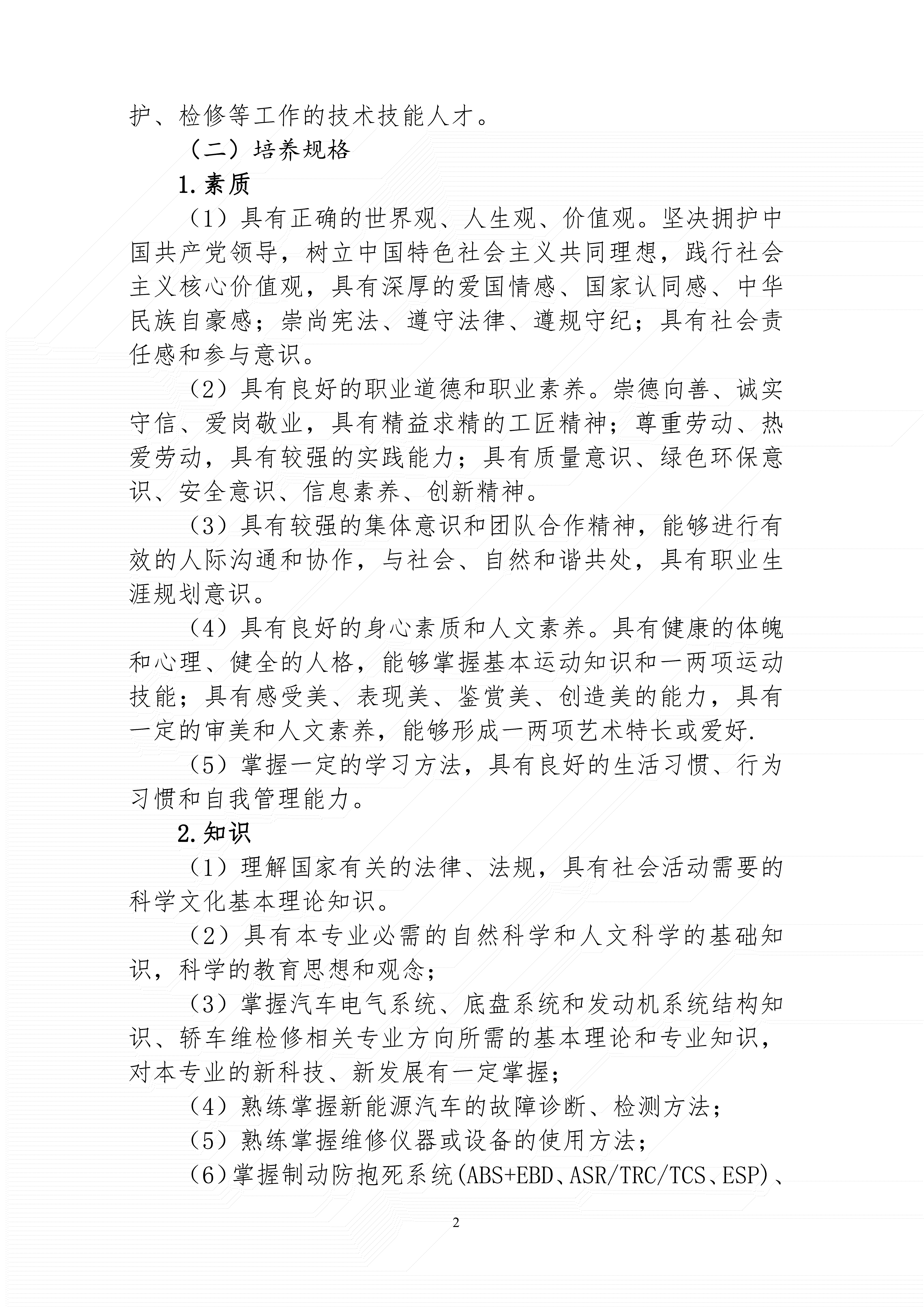 三明市农业学校新能源汽车运用与维修专业人才培养方案(2024)