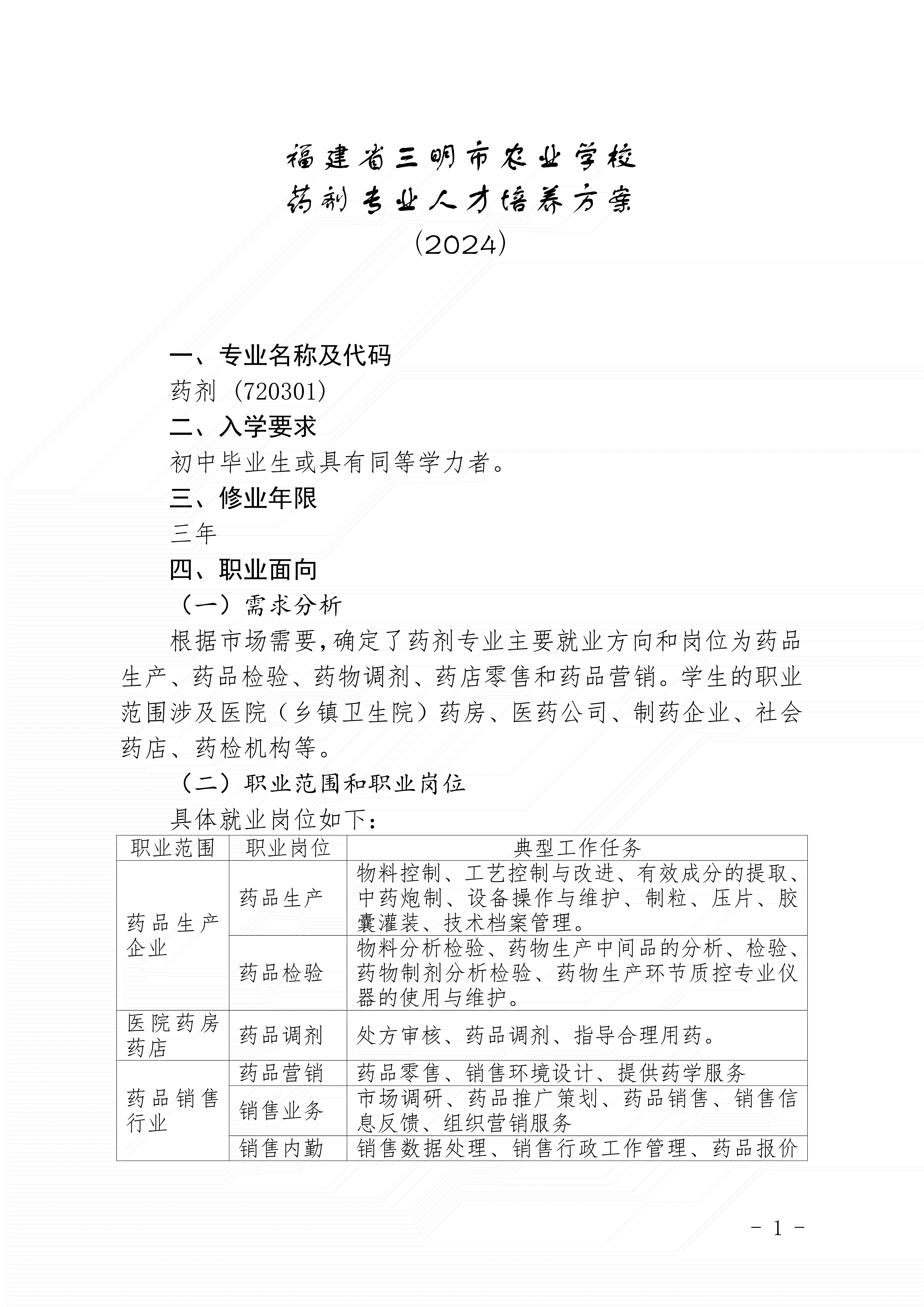 三明市农业学校幼儿保育专业人才培养方案(2024)