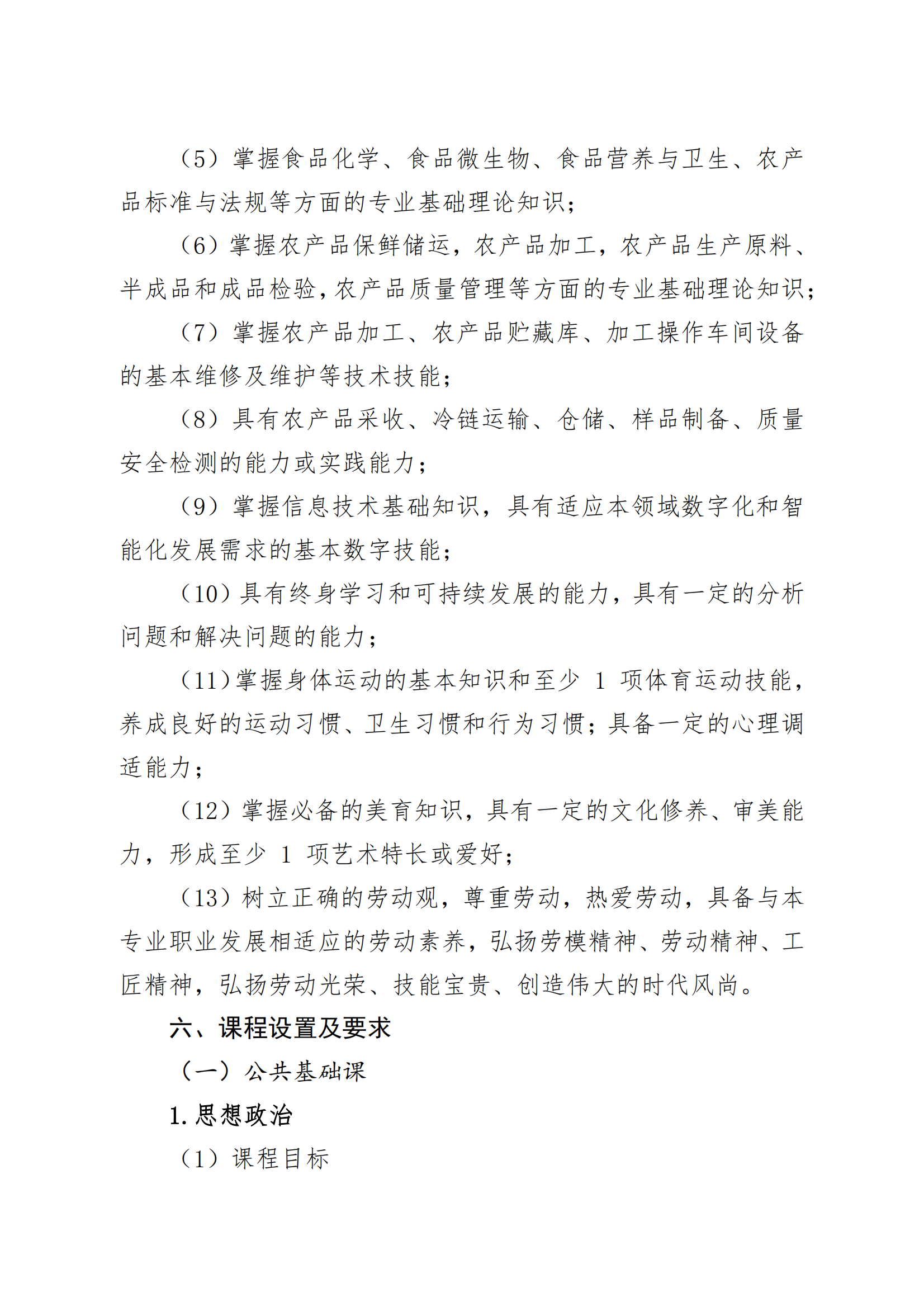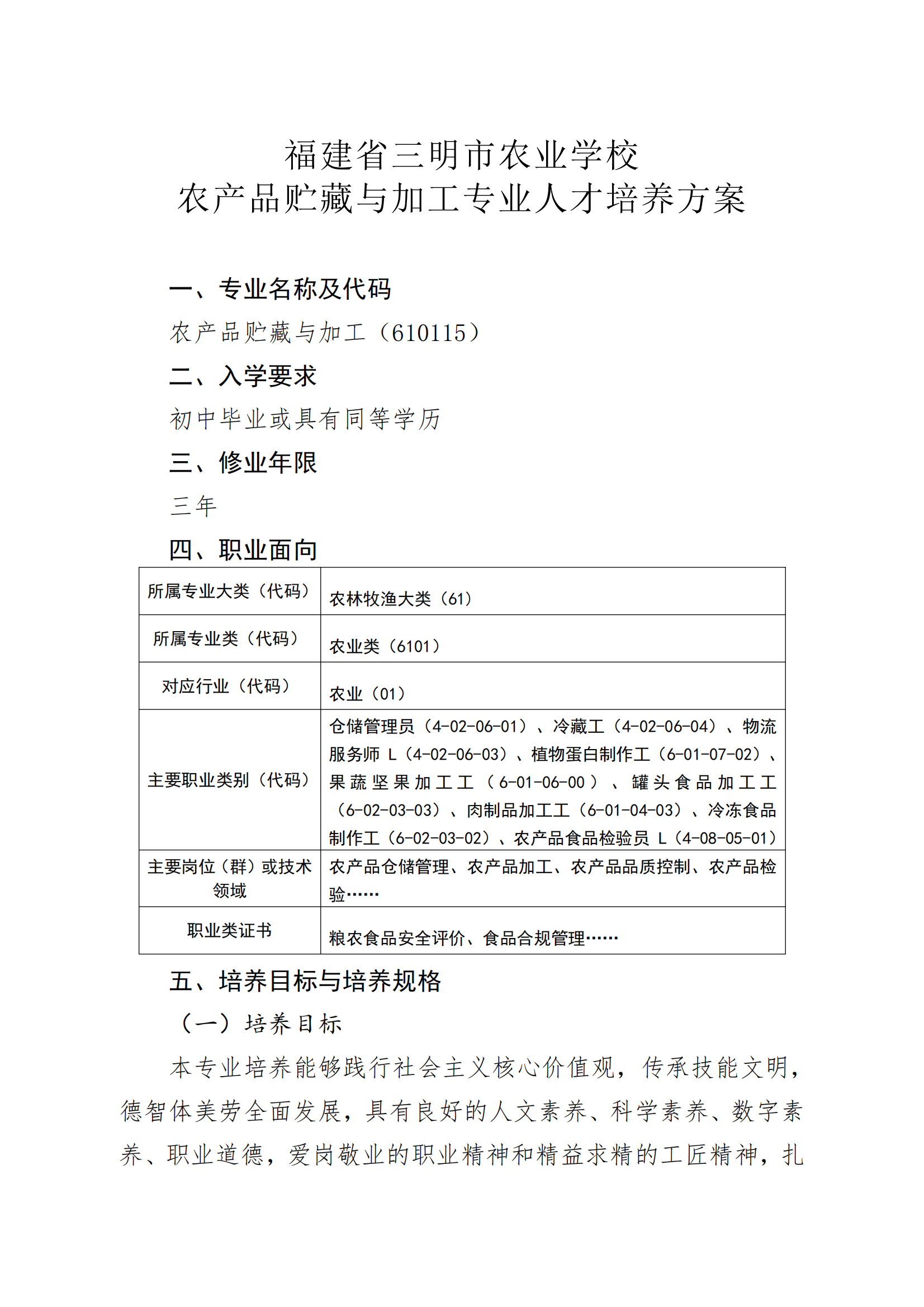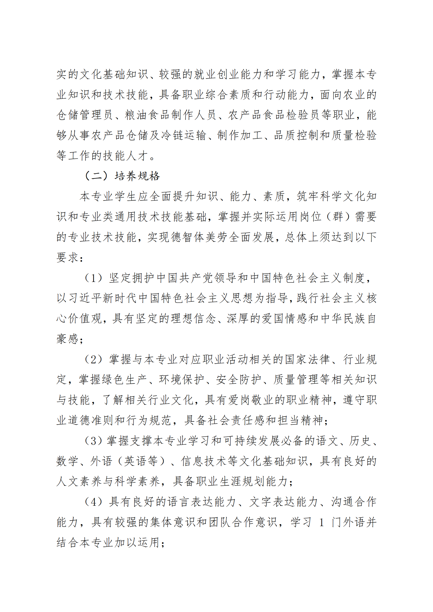 开元网站登录入口农产品贮藏与加工专业人才培养方案
